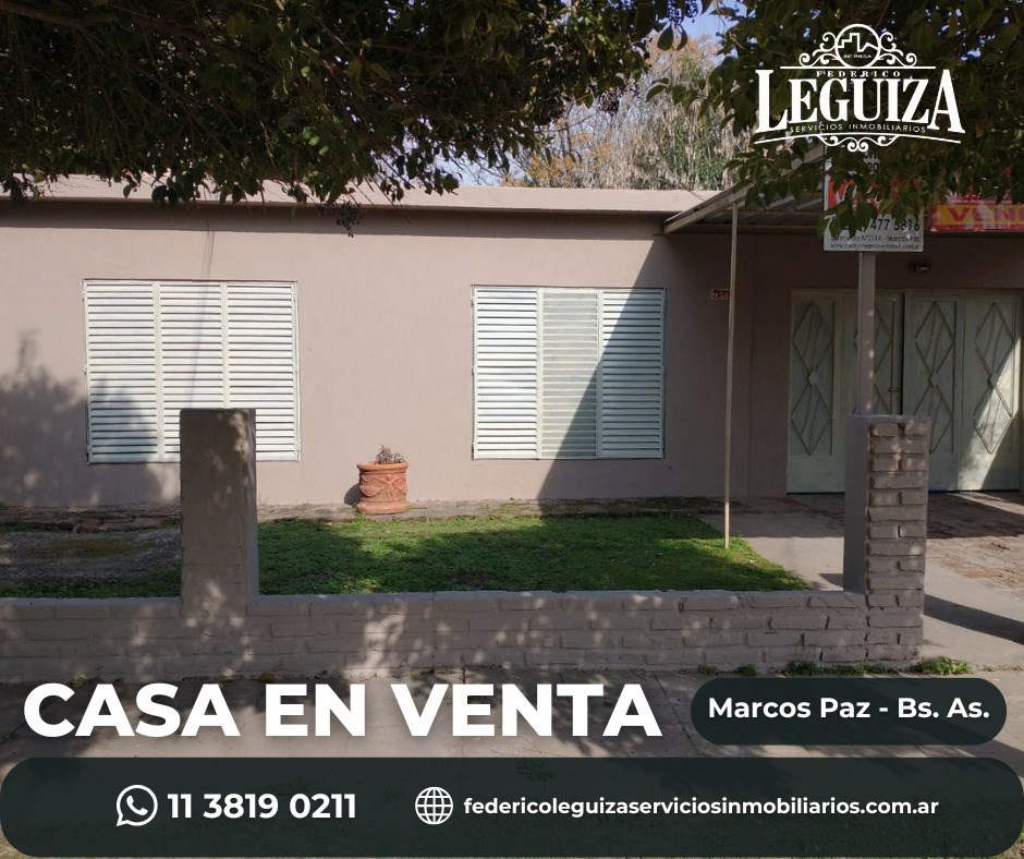 Casa en venta | Marcos Paz, Buenos Aires La casa cuenta con: Living-comedor Cocina Lavadero Tres habitaciones Baño Garaje Gas natural y cloacas Se toma vehículo en parte de pago. Consulte Lote: 433 m² FEDERICO LEGUIZA Servicios Inmobiliarios Matrícula 3948 DJM WhatsApp 11 3819 0211