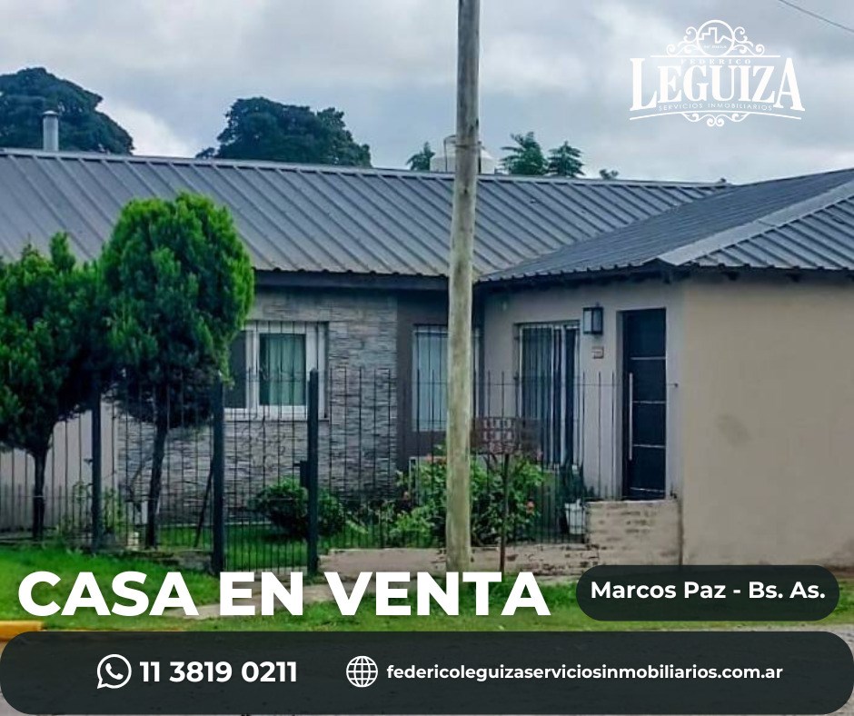 VENTA-CASA- MARCOS PAZ-BUENOS AIRES La casa cuenta con: Living-comedor Cocina Lavadero Tres habitaciones, una en suite. Baño Todos los servicios. Instalados: aires acondicionados, calefactores y termotanque. Lote: 270 m² SE ESCUCHAN OFERTAS FEDERICO LEGUIZA Servicios Inmobiliarios Matrícula 3948 DJM WhatsApp 11 3819 0211